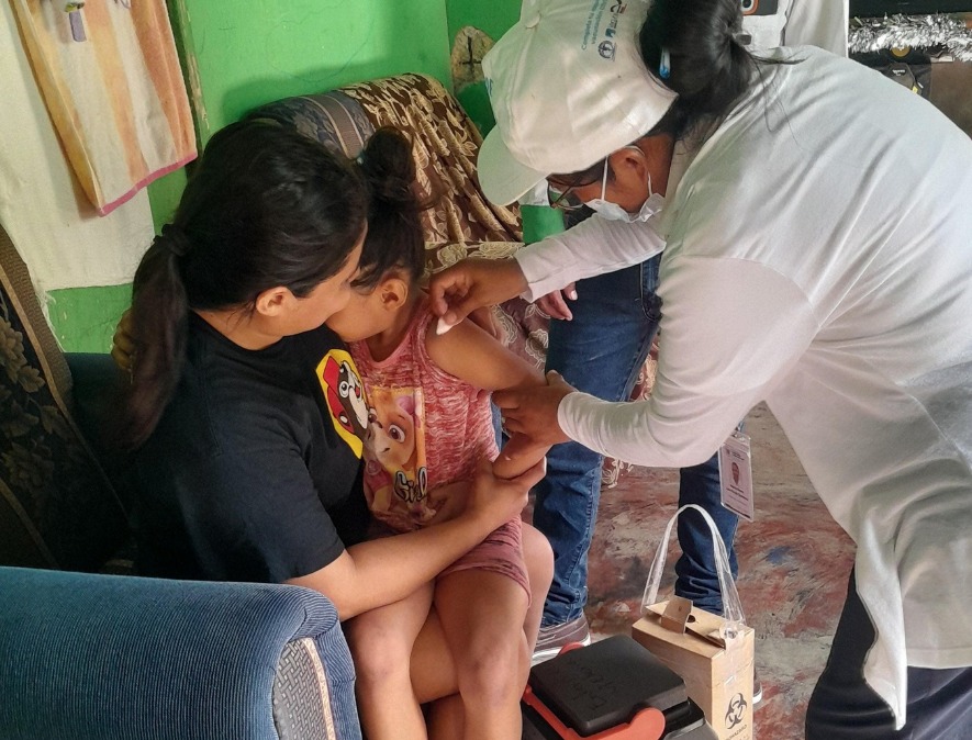 Los equipos de enfermería del Distrito Municipal de San Benito, recorren cada comunidad para atender con inicio, continuación o complemento de esquemas de vacunación para niñas y niños, contribuyendo a su bienestar.