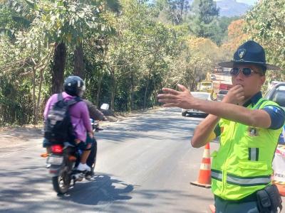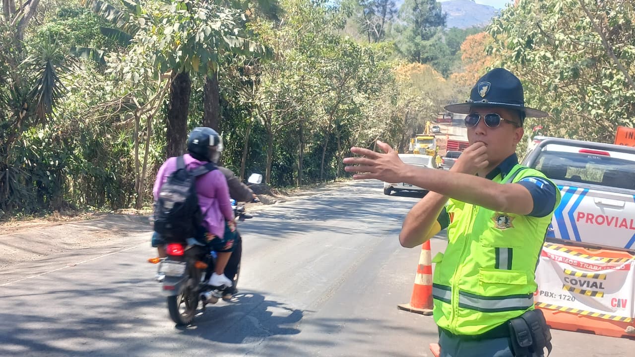 Brigadas de la Dirección General de Protección y Seguridad Vial (Provial brindan seguridad vial debido a trabajos en carretera en el km 67.4 de la Ruta Nacional 16, en jurisdicción de Cuilapa, Santa Rosa. Se alterna el paso de vehículos.
