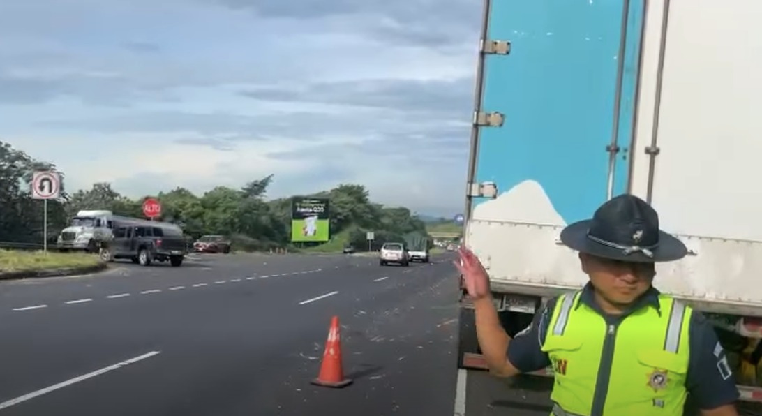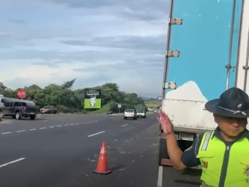 Atención inmediata brindaron brigadas de la Dirección General de Protección y Seguridad Vial (Provial) ante un hecho de tránsito registrado en el kilómetro 45 de la ruta al Pacífico [CA-9 Sur], específicamente en la autopista Palín–Escuintla.