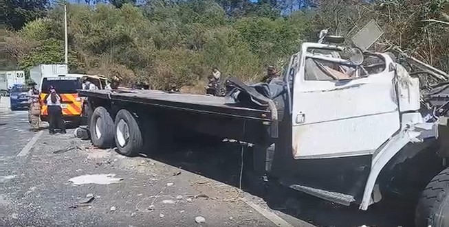 Brigadas de la Dirección General de Protección y Seguridad Vial (Provial) regulan el tránsito y atienden hecho de tránsito en el que se produjo una múltiple colisión vehicular sobre km. 33 de la carretera a El Salvador CA-1 Oriente, en jurisdicción de Fraijanes, Guatemala, donde dos personas fallecieron.