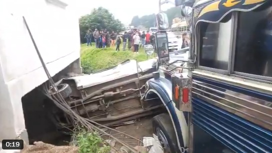 Con el cielo gris como testigo y el pavimento mojado como cómplice, un bus extraurbano y un pickup blanco protagonizaron una aparatosa colisión en el kilómetro 195 de la ruta Interamericana CA-1 Occidente, en jurisdicción de Totonicapán.