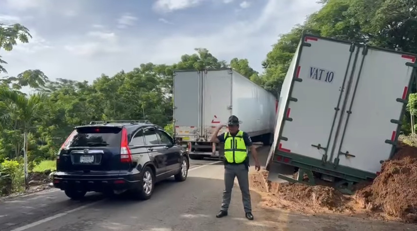 Provial atiende salida de pista de tráiler en Taxisco, Santa Rosa