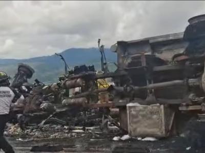 En un lamentable incidente registrado en el kilómetro 21 de la ruta VAS, un cabezal con cisterna que transportaba combustible volcó y se incendió cerca del ingreso a Mayan Golf, provocando el fallecimiento de una persona.