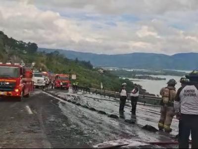 Provial brinda asistencia por incendio de cisterna en la ruta VAS