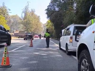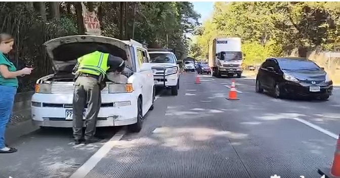Brigadas de la Dirección General de Protección y Seguridad Vial (Provial) brindan asistencia vial a vehículo varado por sobrecalentamiento en el km. 26.2 de ruta Interamericana CA-1 Occidente, en jurisdicción de San Lucas, Sacatepéquez. El vehículo afectado obstruye carril derecho al Oriente, por lo que es necesaria la regulación vehicular en el lugar.