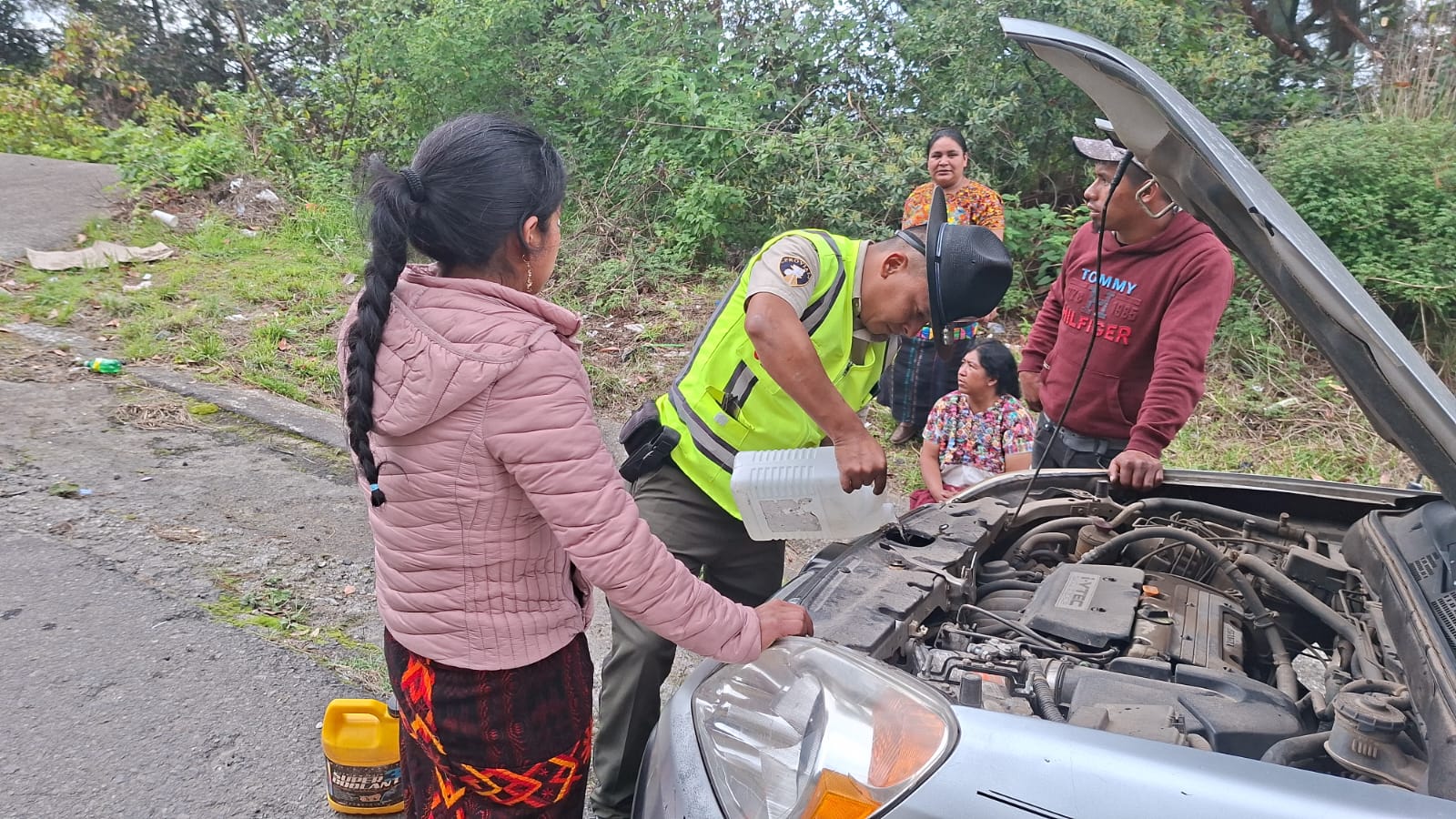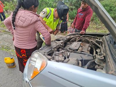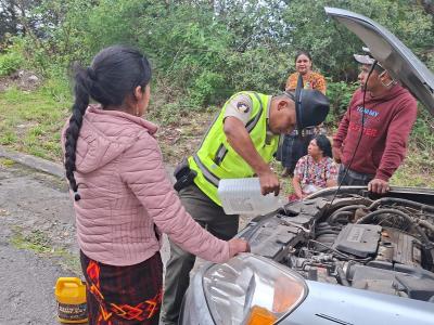 Brigadas de la Dirección General de Protección y Seguridad Vial -Provial- brindaron apoyo inmediato en la regulación del tránsito este lunes a vehículo varado por sobrecalentamiento en el kilómetro 184 de ruta Interamericana CA-1 Occidente, en Salcajá, Quetzaltenango.