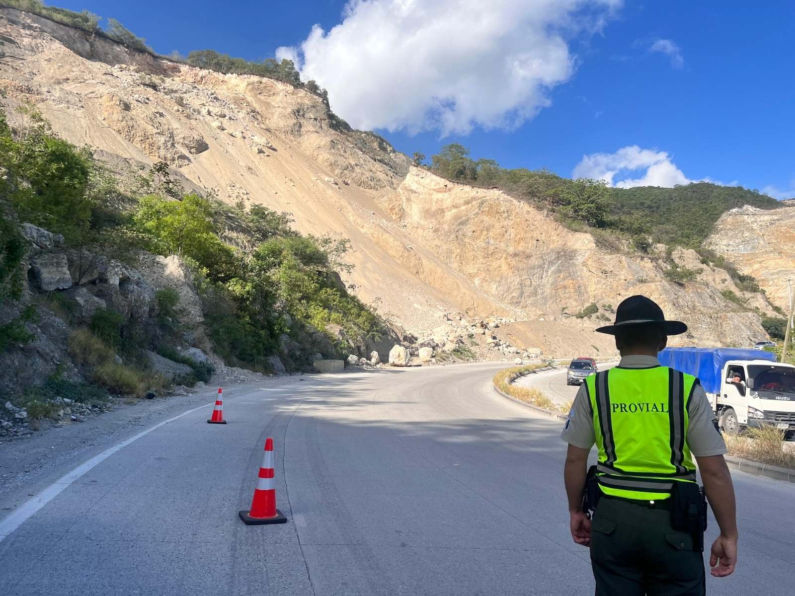 Como respuesta inmediata ante un derrumbe registrado en el kilómetro 66 de la ruta al Atlántico CA-9 Norte, la Dirección General de Protección y Seguridad Vial (Provial) informa que ya se encuentra habilitado un carril reversible con dirección al Norte, con el fin de mantener la circulación vehicular en la zona.
