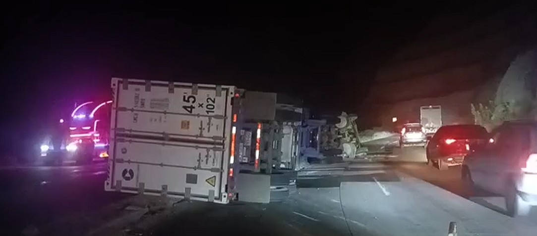 Brigadas de la Dirección General de Protección y Seguridad Vial (Provial) atiende hecho de tránsito en el km 65 de la ruta al Atlántico [CA-9 Norte], en jurisdicción de Guastatoya, El Progreso, donde un tráiler volcado mantuvo obstruido el carril izquierdo en ambos sentidos.