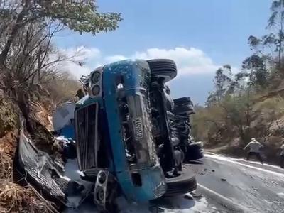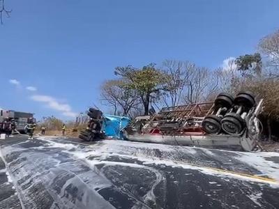 Provial regulan el tránsito debido a tráiler que volcó en Pastores, Sacatepéquez