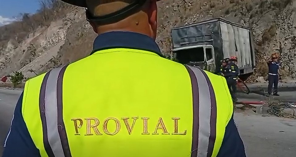 PROVIAL regulan tránsito en Guastatoya donde camión se incendia