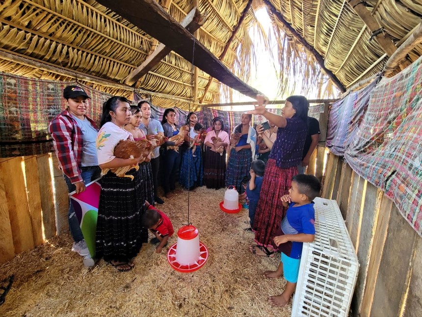 El desarrollo de proyectos avícolas enfocados en la producción familiar, fortalece las capacidades productivas de 24 jóvenes madres de las comunidades de Jolobob y Vista Hermosa, municipio de Poptún, Petén.