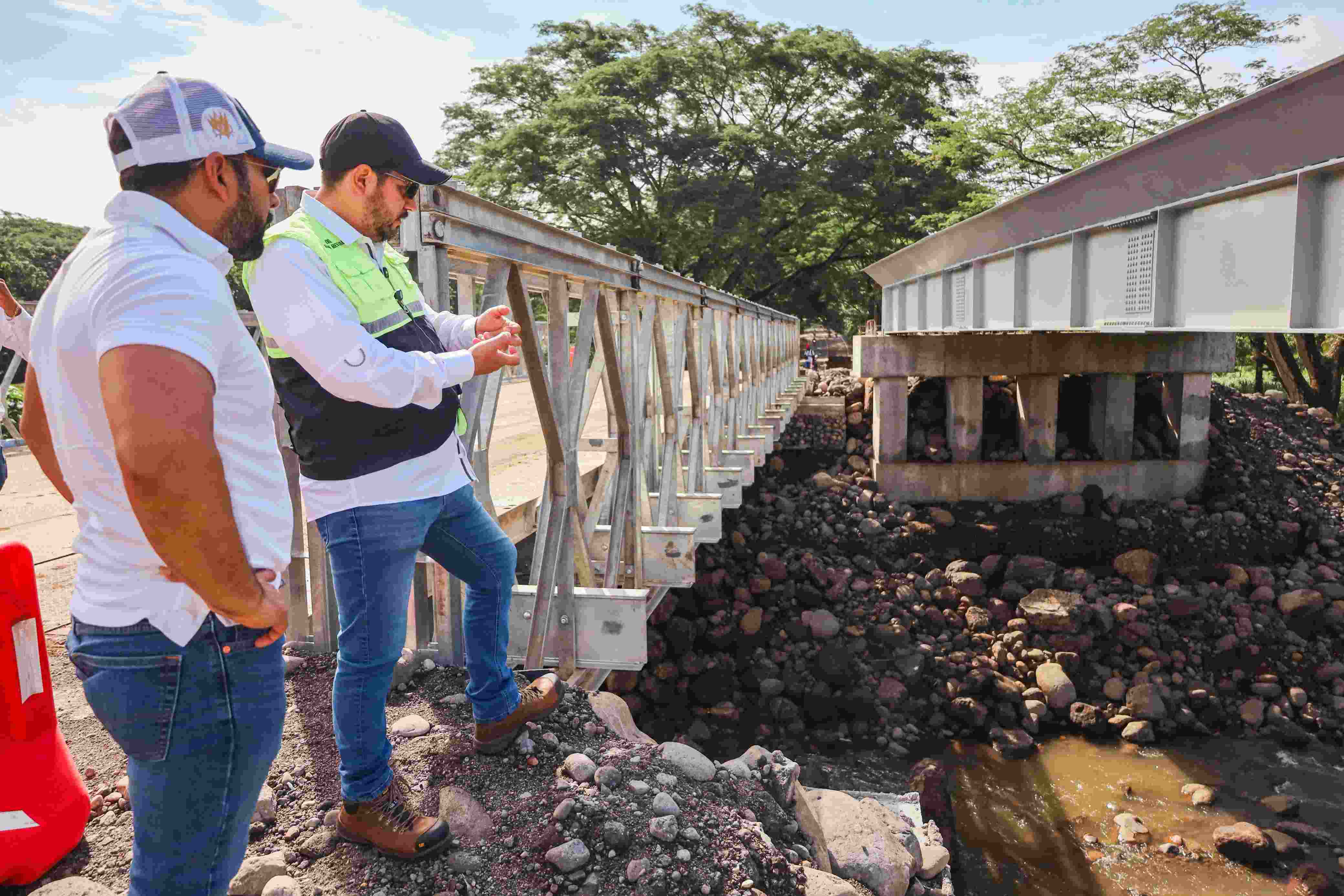 En ese mismo recorrido, también se supervisó la colocación de un puente Bailey sobre el río Platanares, el cual será temporal durante el tiempo que dure al construcción de un puente fijo.