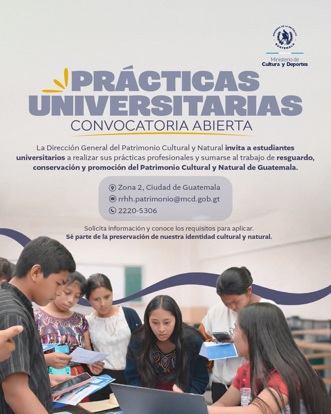 Es tu oportunidad de aprender en campo, aportar tus conocimientos y formar parte del trabajo que protege la identidad cultural y natural del país. 🇬🇹