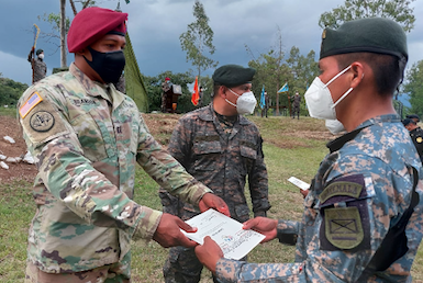 Este domingo 29 de agosto, soldados de la Quinta Brigada de Infantería "Mariscal Gregorio Solares" con sede en Huehuetenango, concluyeron el curso “Medicina táctica”, que fue impartido por personal de la Fuerza de Tarea Conjunta Bravo del Comando Sur los Estados Unidos de América, con la finalidad de mejorar su capacidad de apresto para el cuidado de heridos ante cualquier tipo de eventualidad, capacitación que también fue facilitada a personal de los Bomberos Voluntarios Departamentales y de la Policía Nacional Civil de la localidad.