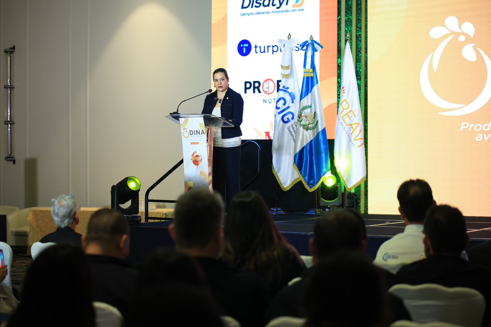 La ministra Rivera, junto a representantes de la Cámara de Industria de Guatemala y de la Gremial de Avicultores (GREAVI), organizadores del evento, encabezó el acto inaugural y reafirmó el compromiso de la cartera con el desarrollo del sector.