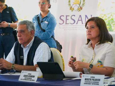 La vicepresidenta de la República, Karin Herrera, presidió la sesión de la Comisión Departamental de Seguridad Alimentaria y Nutricional (CODESAN), celebrada en Suchitepéquez, en la cual el Ministerio de Agricultura, Ganadería y Alimentación (MAGA), por medio del Viceministerio de Seguridad Alimentaria y Nutricional (VISAN), presentó los avances logrados en el departamento.
