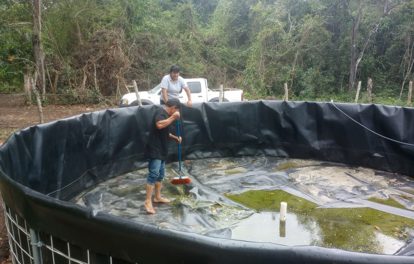 Además de la biometría, el equipo técnico realizó un monitoreo de la calidad del agua y la desinfección de los estanques, garantizando así un ambiente óptimo para la producción de tilapia.
