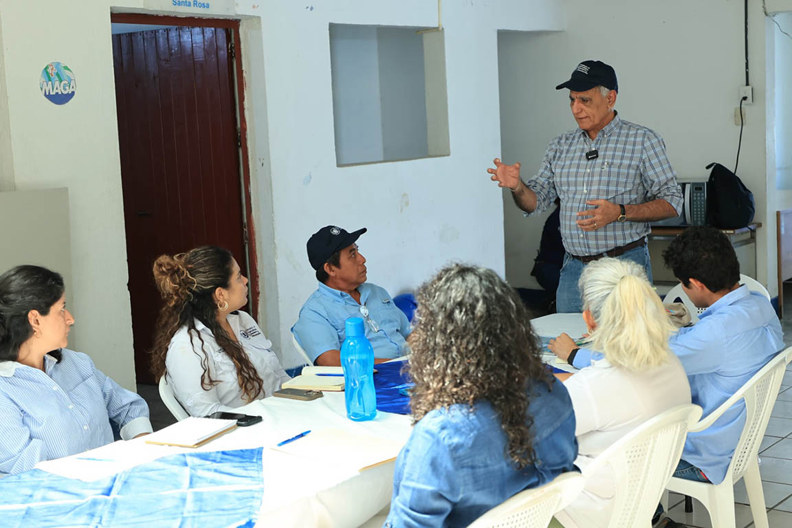 La gira arrancó en el departamento de Santa Rosa, donde el viceministro sostuvo un encuentro con el personal técnico y profesional de la sede departamental del MAGA. Durante esta reunión, Gaitán instó al equipo a mantener una coordinación efectiva para optimizar la implementación de los programas y brindar una mejor atención a las familias en situación de vulnerabilidad.