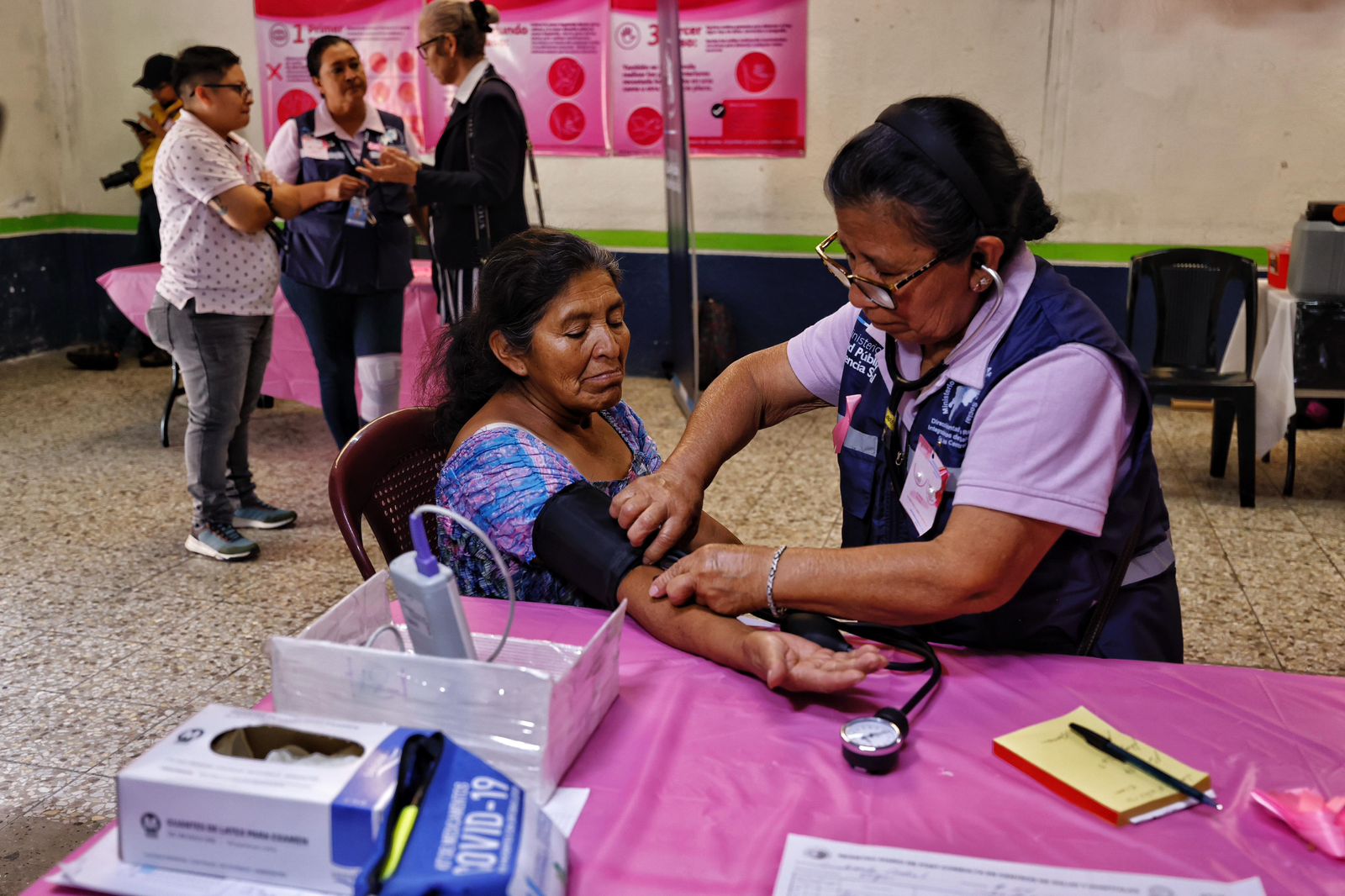 En el marco del Día Mundial de la Lucha Contra el Cáncer de Mama, el Ministerio de Salud llevó a cabo una jornada integral de salud en el Barrio Santa Marta, en la zona 3 capitalina. Varias mujeres acudieron a la actividad, donde se ofrecieron servicios gratuitos de control de talla y peso, consultas médicas y dentales, desparasitaciones, y vacunación tanto para niños como para adultos. Además, se impartieron charlas educativas para sensibilizar a la población sobre la importancia de la detección temprana.