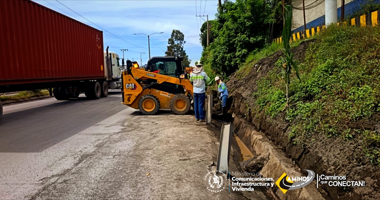 La Dirección General de Caminos (DGC), a través del Departamento de Asfaltos y en coordinación con la Unidad Ejecutora de Conservación Vial (Covial), desarrolla trabajos de limpieza en la Ruta CA-09 Sur, específicamente en el tramo que conecta Amatitlán con Palín, a la altura del puente ubicado en el kilómetro 32.2.