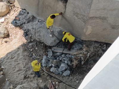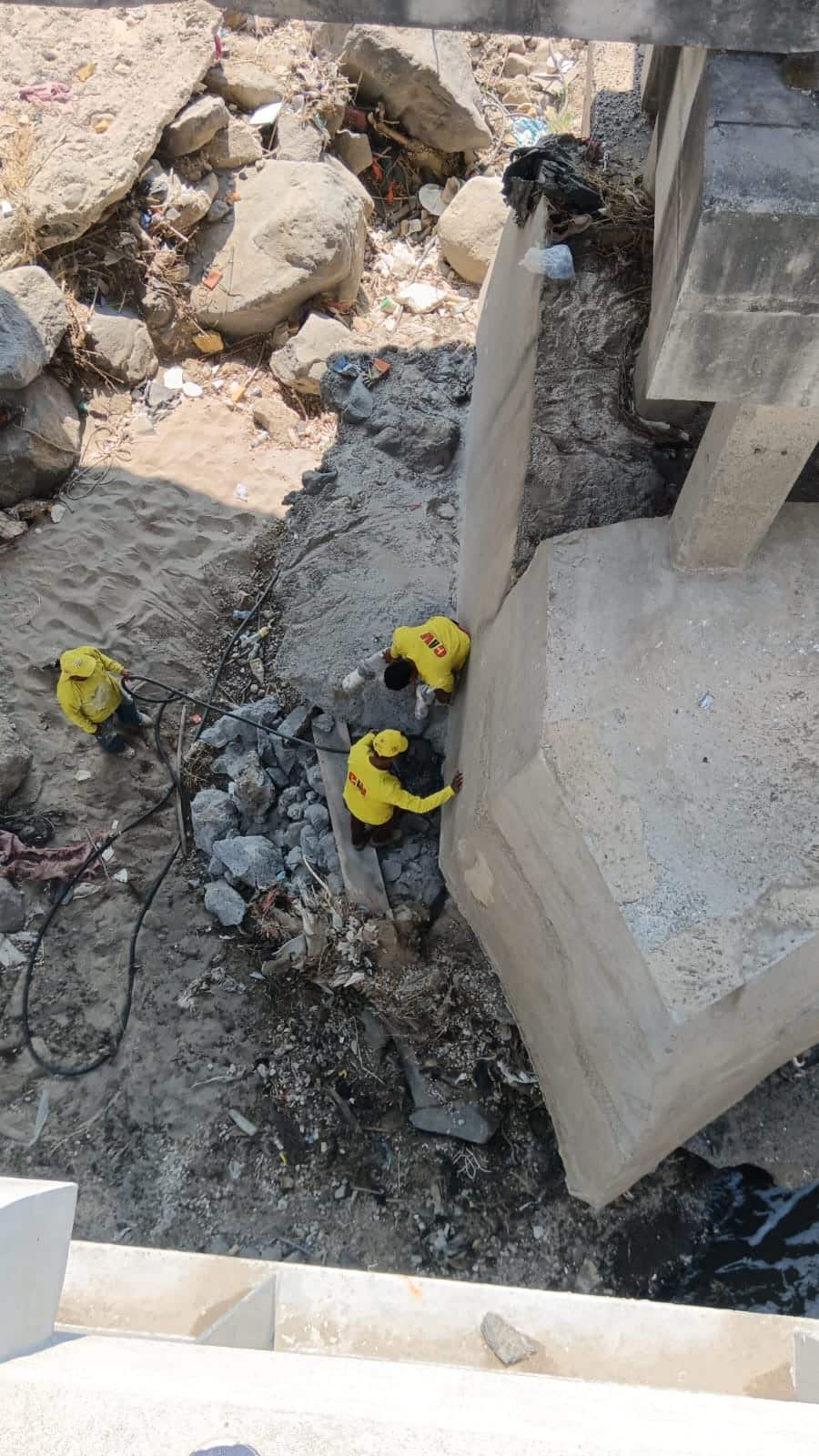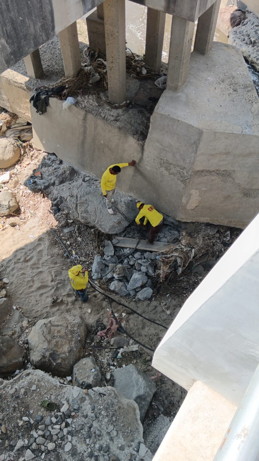 El personal de la Unidad Ejecutora de Conservación Vial (Covial) trabaja en la reparación de los cimientos de la estructura, un esfuerzo importante para fortalecer la infraestructura vial de la zona y asegurar que este puente siga siendo una vía de comunicación vital para miles de guatemaltecos.