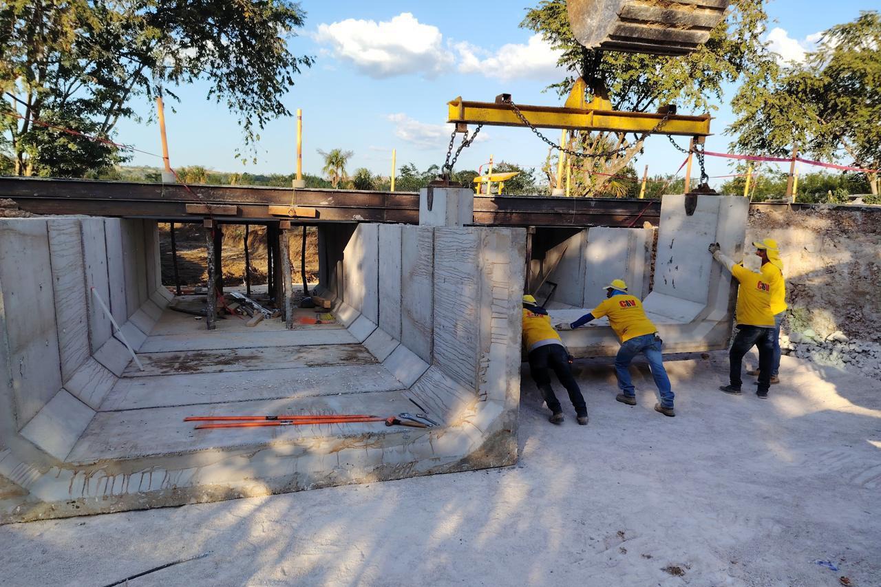 Los trabajos de recuperación de la RN-24 en Petén siguen avanzando a buen ritmo. Actualmente, en el kilómetro 618, a la altura de la ruta que conecta con El Ceibo, frontera con México, se están llevando a cabo excavaciones y la colocación de módulos de concreto para la bóveda.