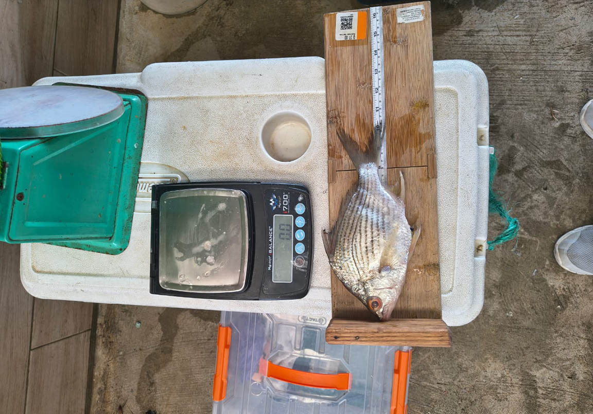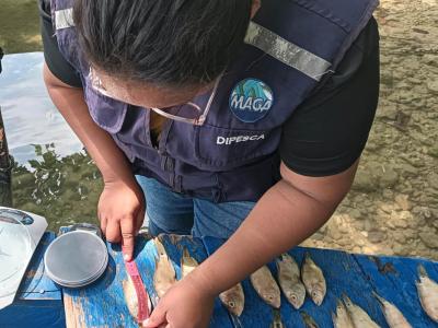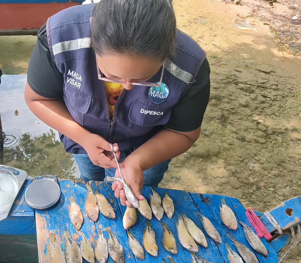 Luego, en el embarcadero principal de Río Dulce, Izabal, se realizó el levantamiento de datos de biometría (peso en gramos y longitud total en centímetros) de especies como palometa, róbalo, bagre y sábalo, las que son capturadas en el área comprendida entre el lago de Izabal, Río Dulce y el Golfete.