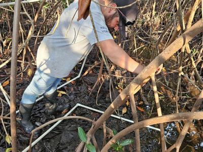 Este trabajo se realizó los días 23 y 24 de abril de 2025, durante los cuales se tomaron muestras para determinar tallas, pesos y madurez sexual del cangrejo rojo. ]También se hicieron cuadrantes para el conteo de madrigueras, con el fin de establecer la época de muda del crustáceo.