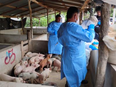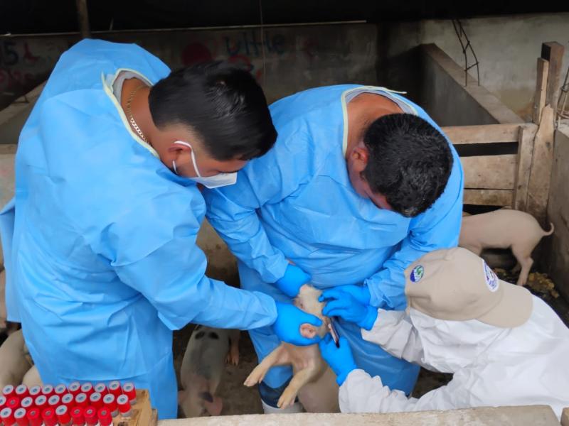 Durante dicha jornada se hizó el muestreo de 30 porcinos en la granja La Vega Ortiz, acción que también da cumplimiento a la optimización de la vigilancia epidemiológica para garantizar la salud animal en el país.