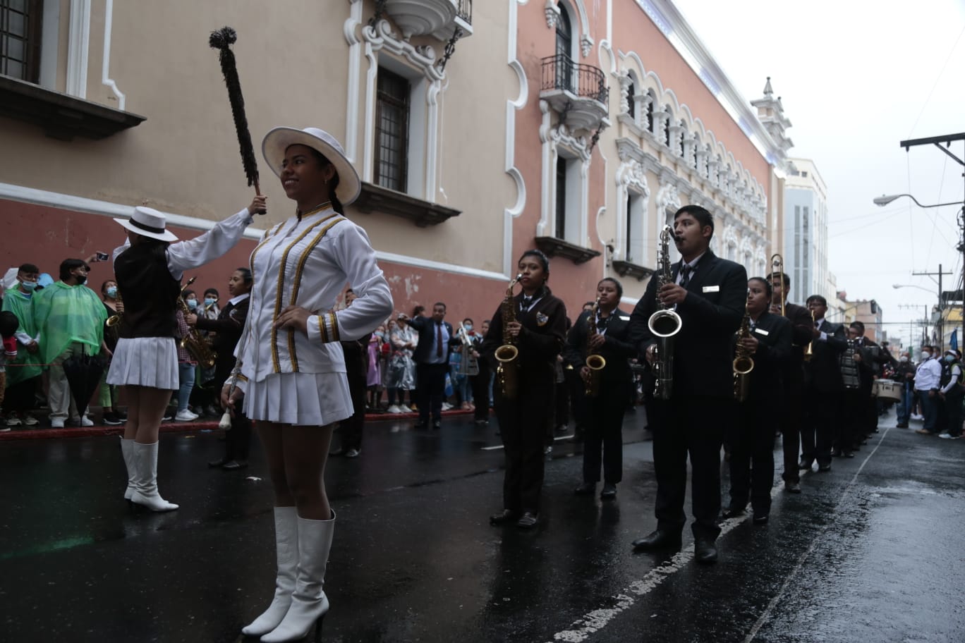 Para ello diferentes centros educativos se hicieron presentes en el Arco de Correos para demostrar su amor por Guatemala con sus marchas, melodías y ritmo.