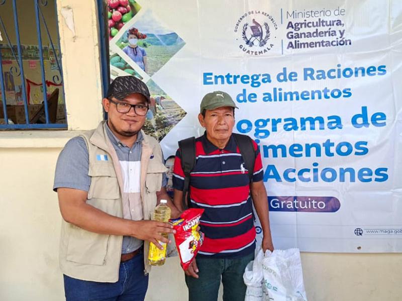 La distribución gratuita de 2321 raciones de alimentos como incentivo a familias que participaron en proyectos de desarrollo comunitario, inició el sábado 8 de noviembre. Esta acción es impulsada por el Ministerio de Agricultura, Ganadería y Alimentación (MAGA), por medio del programa Alimentos por Acciones (APA).