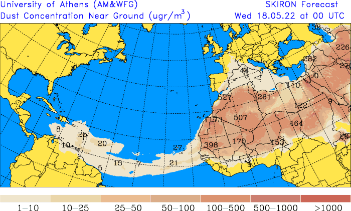 Debido a los fuertes vientos sobre la región del norte de África, se espera un desplazamiento del polvo del Sahara sobre el Atlántico Norte Tropical durante junio a agosto, afectando de esta manera, el Caribe, América Central, México y el sur de Estados Unidos, agregó el Departamento de Investigación y Servicios Hídricos de la Sección de Calidad de Agua y Aire del INSIVUMEH.