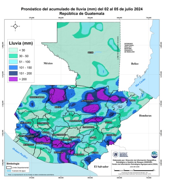 Las intensas precipitaciones que azotan el país, con el consecuente riesgo de inundaciones, deslizamientos y lahares, el Centro de Información Estratégica Agropecuaria (CIEA) del Ministerio de Agricultura, Ganadería y Alimentación (MAGA), hace un llamado al sector agropecuario para tomar medidas preventivas.