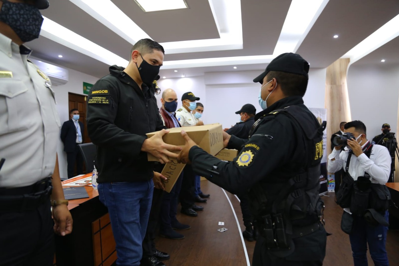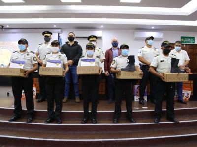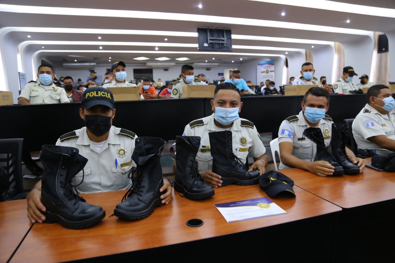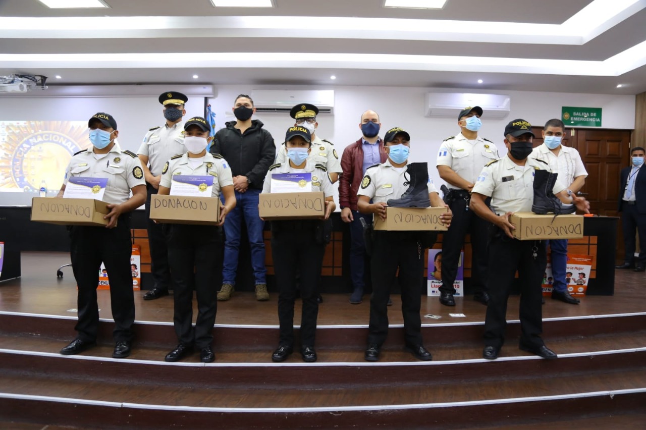 Durante la actividad, con el apoyo de la asociación de ayuda comunitaria “Ángeles de amor” de San Juan Sacatepéquez, se otorgó un diploma especial y la donación de botas tácticas a 60 agentes del distrito central y 40 agentes que lideran la labor preventiva de la PNC.