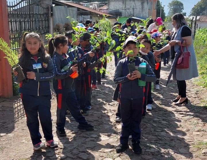 Con el apoyo de docentes y estudiantes de nivel preprimario y primario del Colegio Liceo Minerva, 45 alumnos aprendieron a plantar un árbol y lo pusieron en práctica con 90 árboles de pino, ciprés y aliso