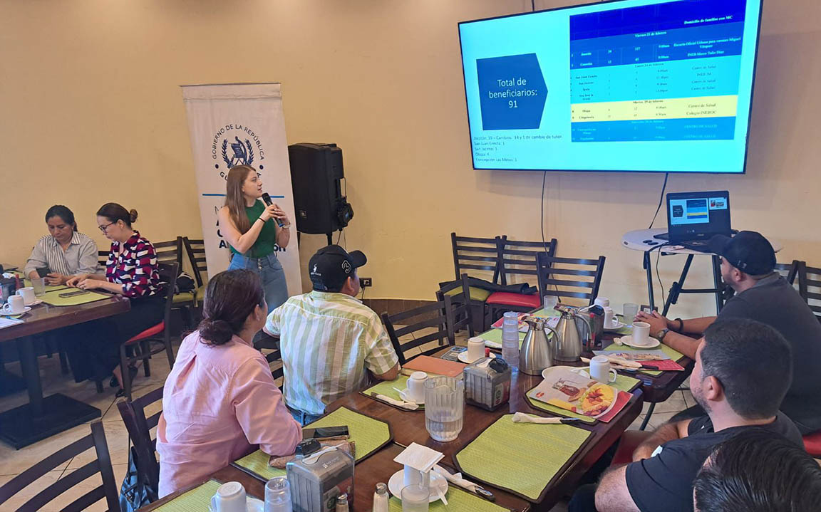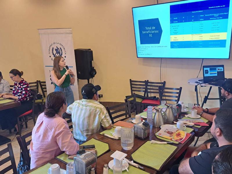 Durante el encuentro, la nutricionista del componente de Agricultura Sensible a la Nutrición del Viceministerio de Seguridad Alimentaria y Nutricional (VISAN) presentó un informe con los avances del primer semestre. Entre las acciones destacadas figuran: