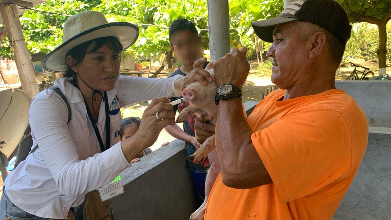 Productoras y productores de porcinos del municipio de Iztapa, Escuintla, participaron en una jornada de controles epidemiológicos, con el propósito de fortalecer el bienestar animal y la producción responsable y autosostenible.