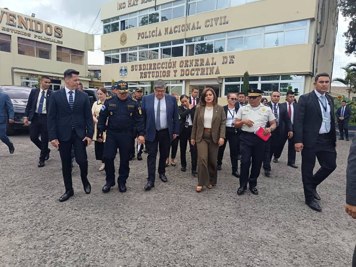 En un acto que refleja el firme compromiso del gobierno con la seguridad ciudadana y la profesionalización de las instituciones encargadas de velar por la protección de la población, la Presidenta en funciones, Karin Herrera, realizó una supervisión en la Academia de la Policía Nacional Civil (PNC), acompañada por el Ministro de Gobernación, Francisco Jiménez; el Viceministro de Seguridad, José Portillo; el Viceministro de Tecnología de la Información y las Comunicaciones, William Cameros; la Viceministra de Prevención de la Violencia y el Delito, Mayda De León; y el Director General de la PNC, David Custodio Boteo, quien subraya la importancia que se le otorga a la formación y capacitación de los agentes policiales en el país.