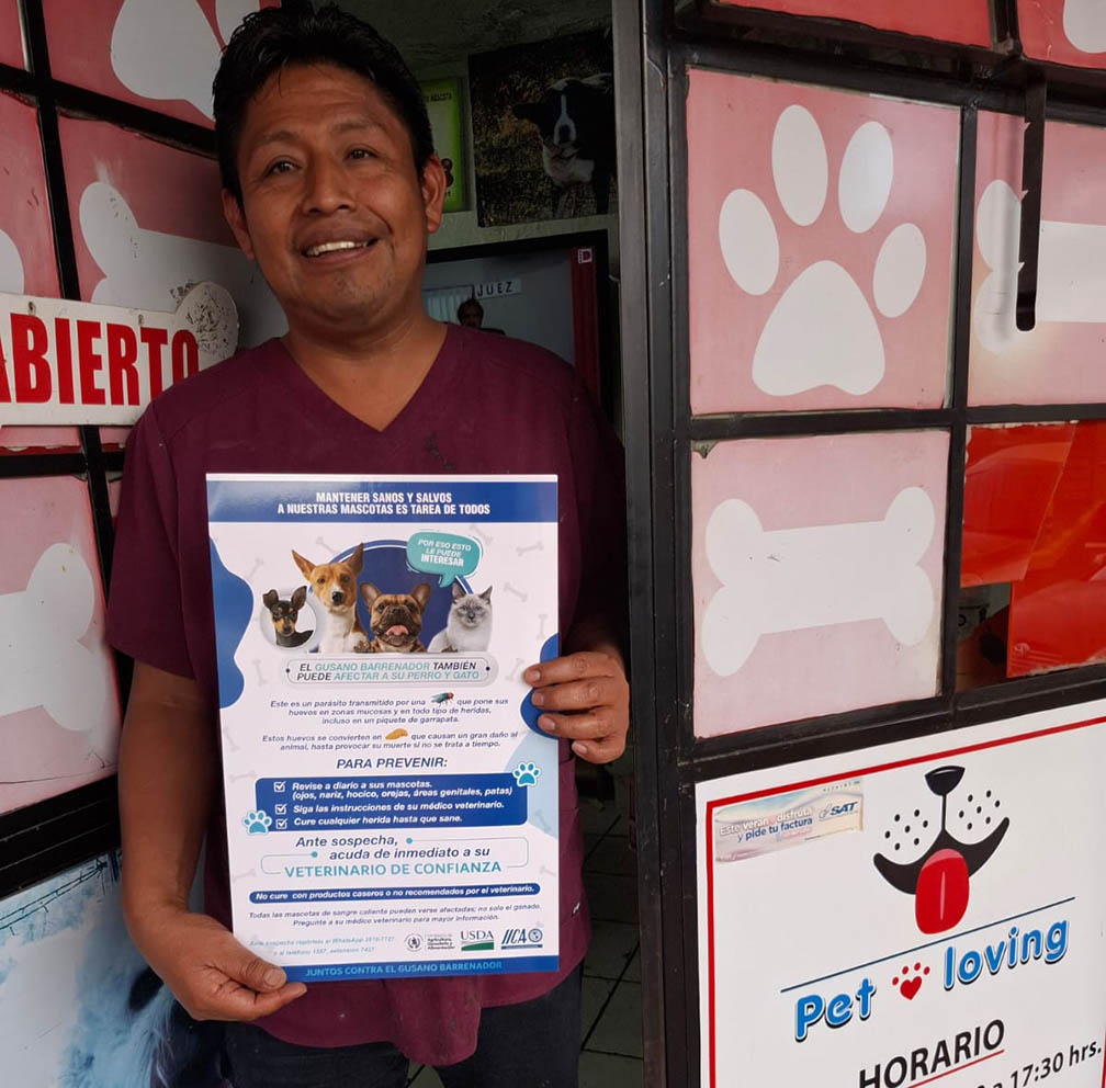 Acciones de divulgación sanitaria y capacitación técnica se intensificaron en clínicas veterinarias y tiendas de mascotas del sector del Bulevar Sur de San Cristóbal de la Zona 8 de Mixco, con el objetivo de fortalecer la vigilancia epidemiológica y mejorar la respuesta ante el Gusano Barrenador (GB).