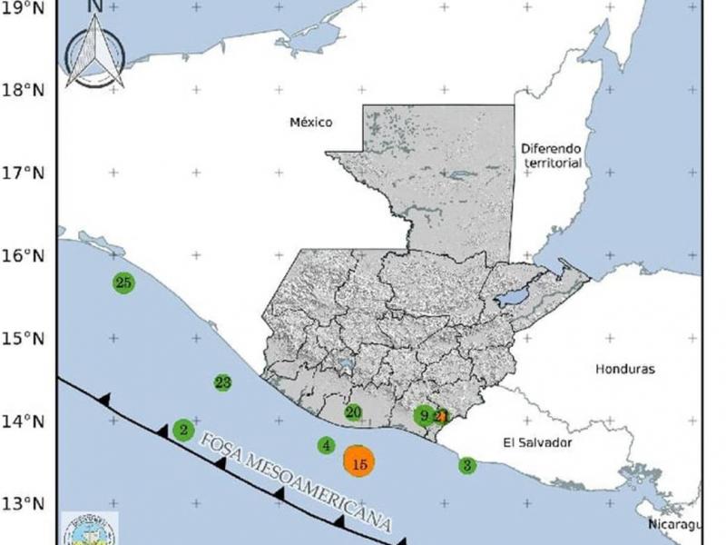 Las regiones epicentrales de los 25 eventos sísmicos son: departamentos de Jutiapa (5), Santa Rosa y Escuintla; océano Pacífico (16) y océano Pacífico-costas de El Salvador y México.