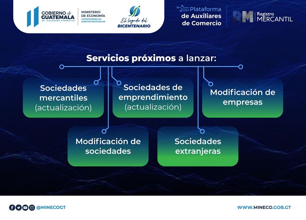 El Lanzamiento de la nueva Plataforma de Inscripción de Auxiliares en el e-Portal, así como la implementación de la Ley de Simplificación de Requisitos y Trámites Administrativos forman parte de los objetivos del Ministerio de Economía de este año en donde, entre otros aspectos, se busca avanzar en el Gobierno electrónico con el objetivo de facilitar negocios, reducir la tramitología e impulsar el comercio electrónico, acciones que también contribuirán a que los emprendedores y las MIPYME puedan reducir sus costos y crecer en sus operaciones.