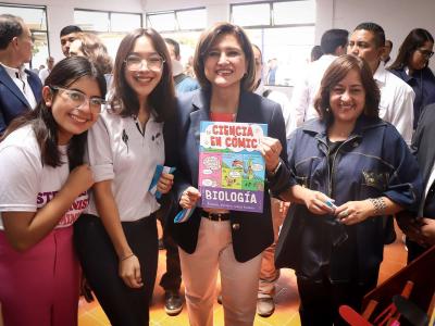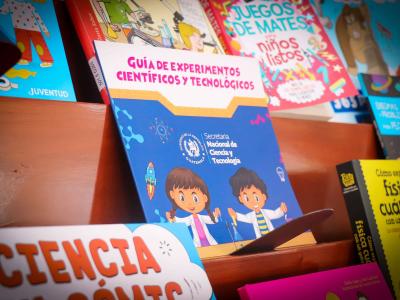 Gabriela Montenegro, secretaria Nacional de Ciencia y Tecnología, entregó a los docentes una guía de experimentos científicos para realizar con los estudiantes desde las aulas, generando nuevas formas de aprendizaje que fomentan la curiosidad y motivan el conocimiento científico a través de la observación, experimentación, participación y diversión.