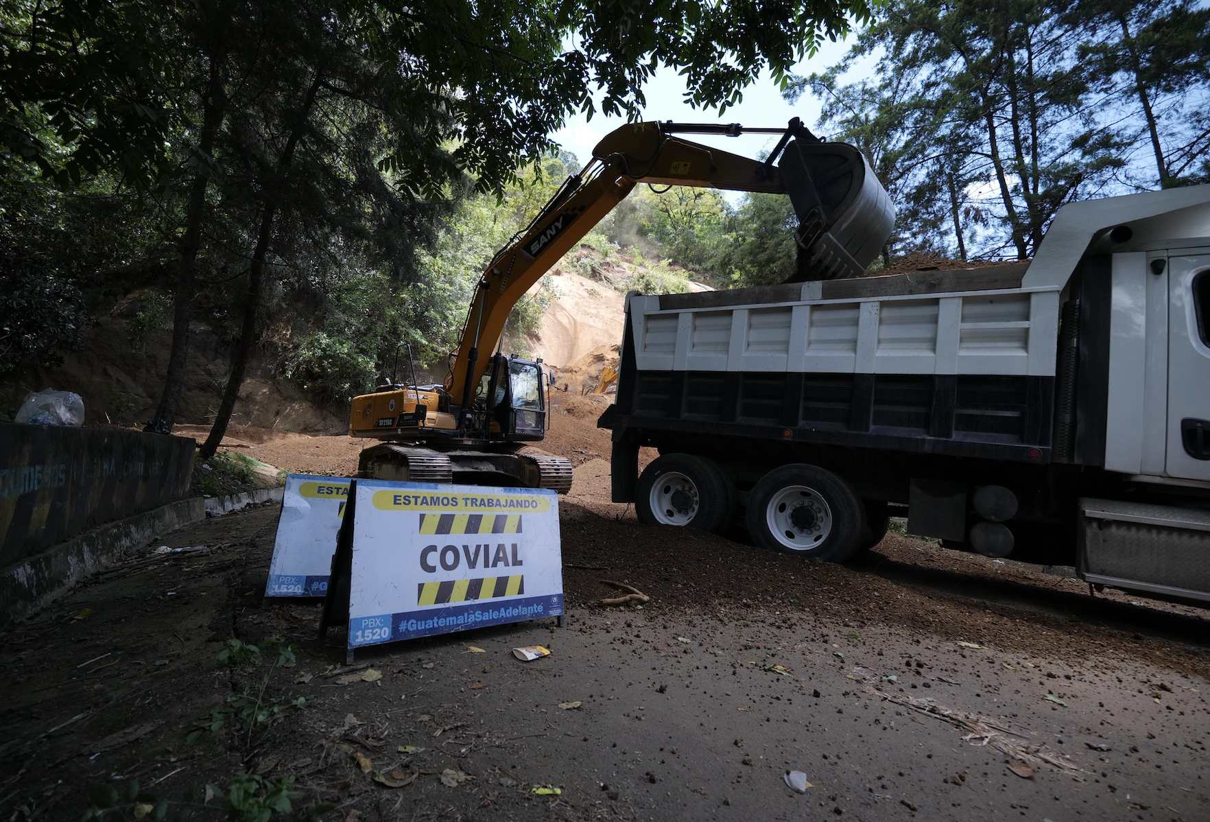 Equipos de emergencia y maquinaria pesada trabajan intensamente en el kilómetro 46.5 de la ruta departamental ZAC-01, que conecta las comunidades de San Juan del Obispo y Santa María de Jesús, en el departamento de Sacatepéquez, luego de que al menos cinco derrumbes afectaran el paso vehicular.