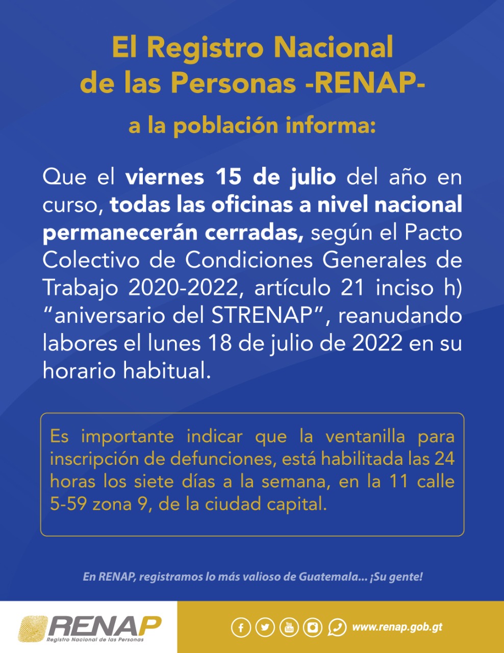 El Registro Nacional de las Personas -RENAP- a la población informa: