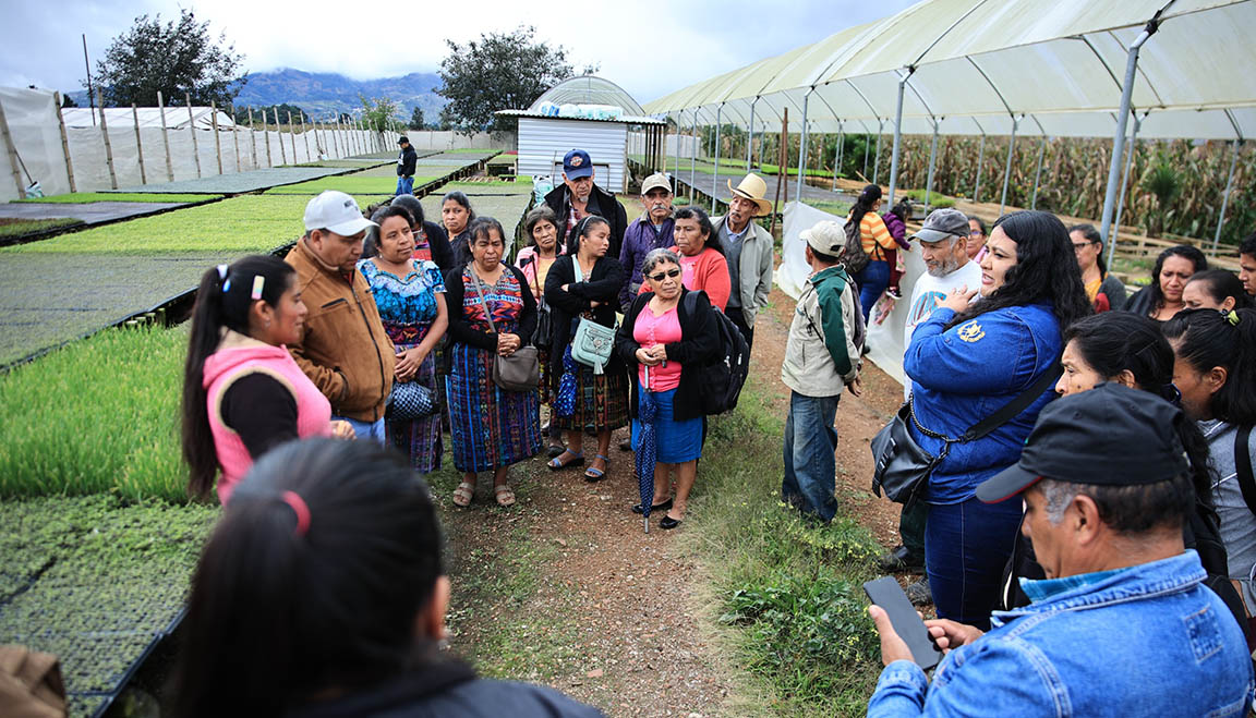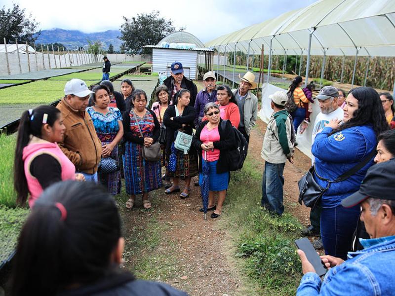 Beneficiarios de huertos comunitarios de Fraijanes, Guatemala, visitaron el huerto comunal modelo “El Tunal Flor del Frijol”, localizado en Parramos, Chimaltenango, con el propósito de replicarlo en su comunidad y al mismo tiempo, adquirieron pilones de hortalizas para sus propias siembras familiares.