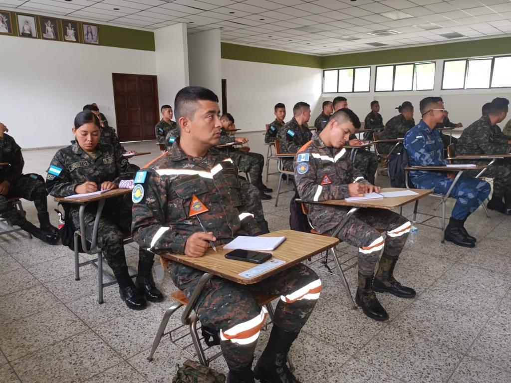 Rescatistas del Batallón de Ayuda Humanitaria y de Rescate del Ejército de Guatemala se entrenan en el Curso Integrado de Ayuda Humanitaria.