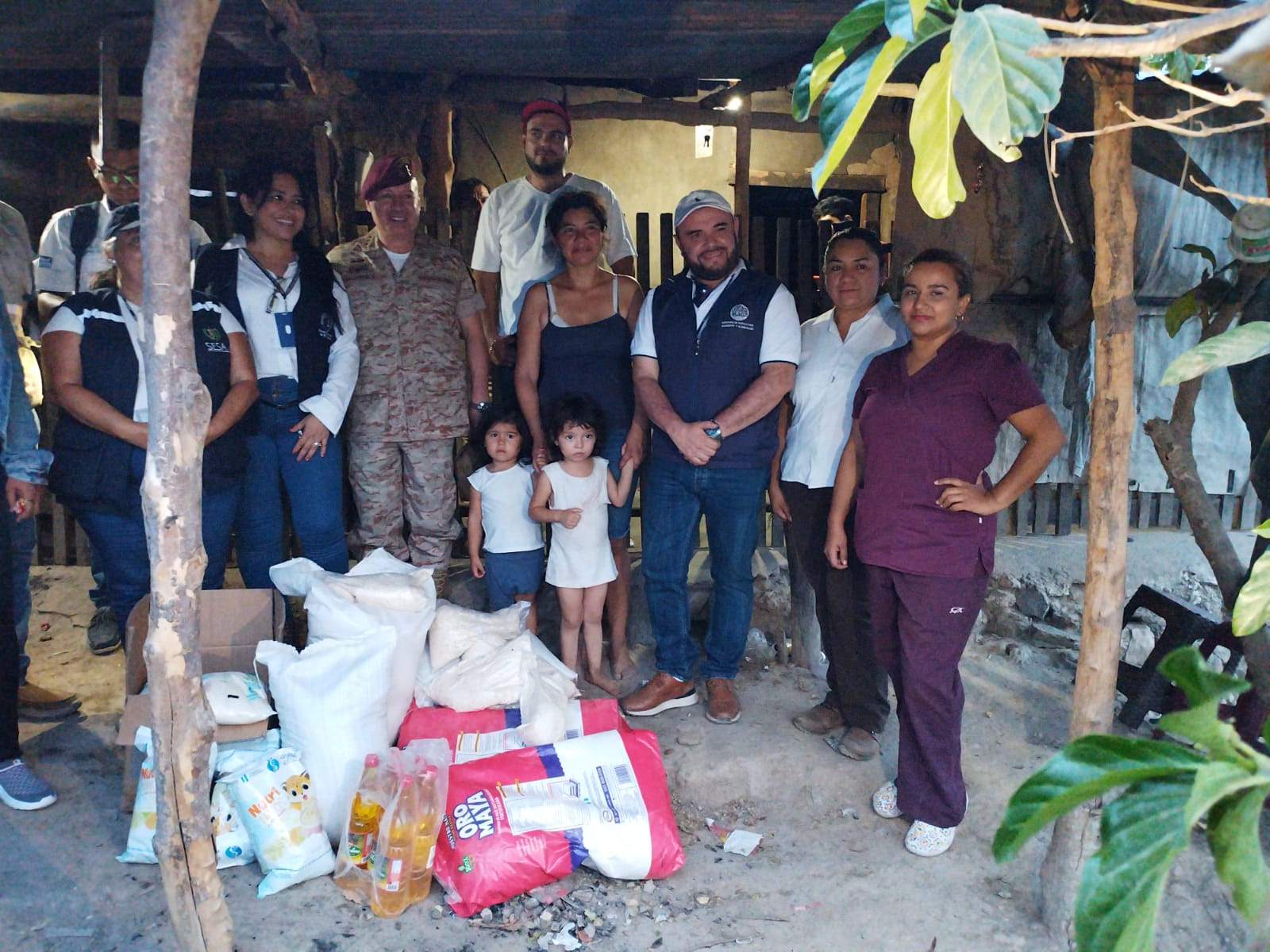 Reservistas militares apoyan en la entrega de paquetes nutricionales a niños con desnutrición aguda como parte de la Gran Cruzada Nacional por la Nutrición.