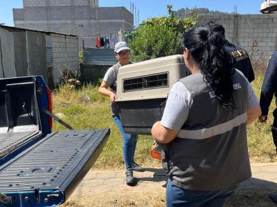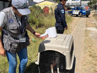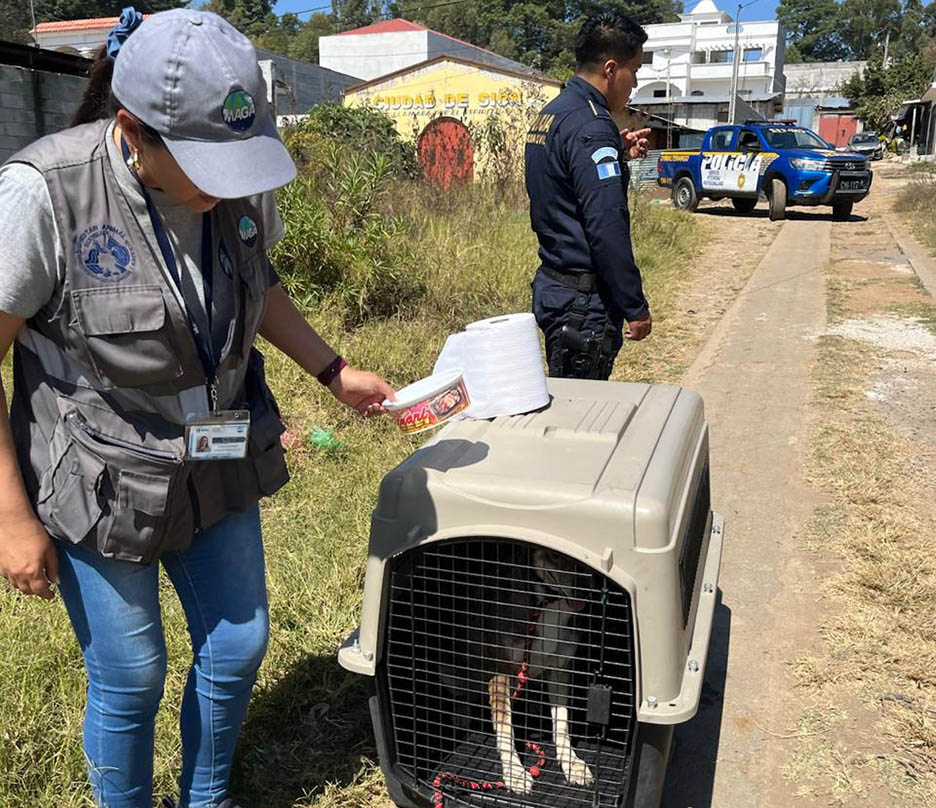 El Ministerio de Agricultura, Ganadería y Alimentación (MAGA), por medio de la Unidad de Bienestar Animal (UBA) resguarda a una perra que se encontraba en condición de maltrato, en la colonia El Vergel, municipio de Chimaltenango.