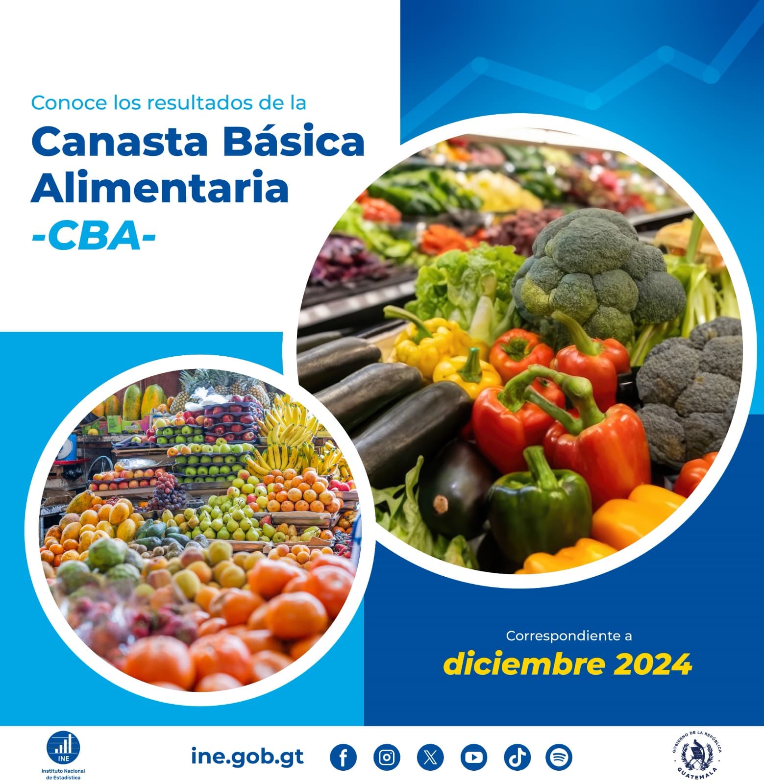 Guatemala, 07 de enero de 2025. El Instituto Nacional de Estadística (INE), presenta resultados de la Canasta Básica Alimentaria Urbana (CBAU) y Canasta Básica Alimentaria Rural (CBAR), además la Canasta Ampliada Urbana (CAU) y Canasta Ampliada Rural (CAR) al mes de diciembre del 2024.