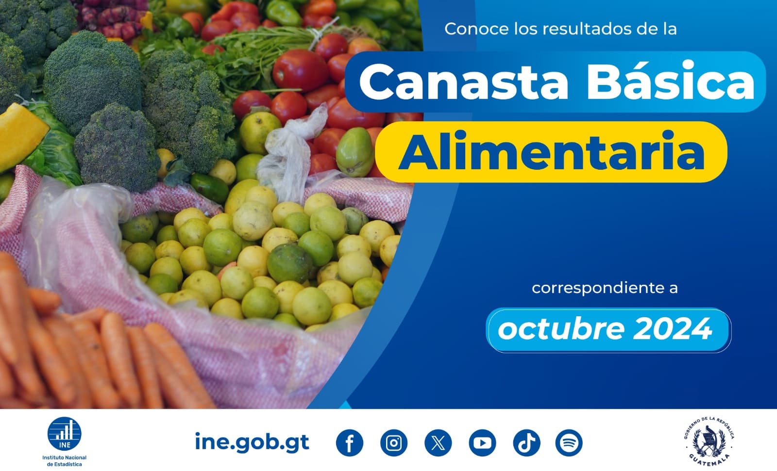 Guatemala, 7 de noviembre de 2024. El Instituto Nacional de Estadística (INE), presenta resultados de la Canasta Básica Alimentaria Urbana (CBAU) y Canasta Básica Alimentaria Rural (CBAR), además la Canasta Ampliada Urbana (CAU) y Canasta Ampliada Rural (CAR) al mes de octubre del 2024.